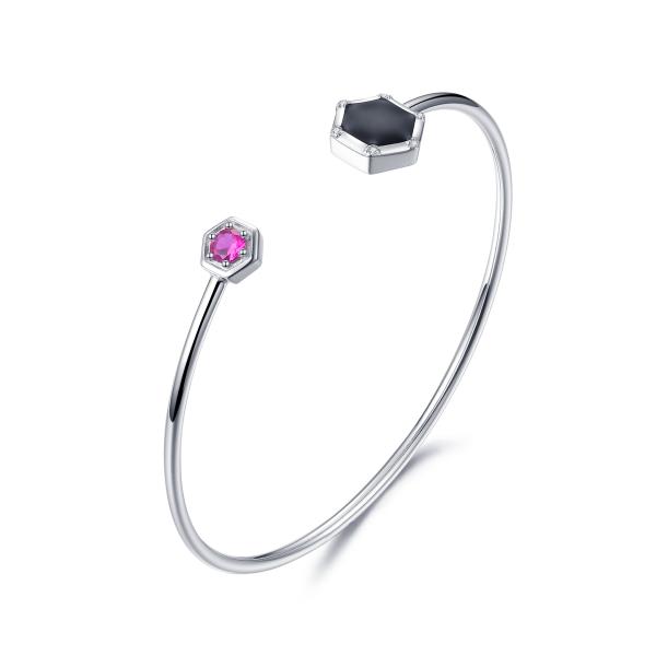 Hexagon Blk Enamel 925 Sterling Silver Bangles Diamond Bangles Geometry